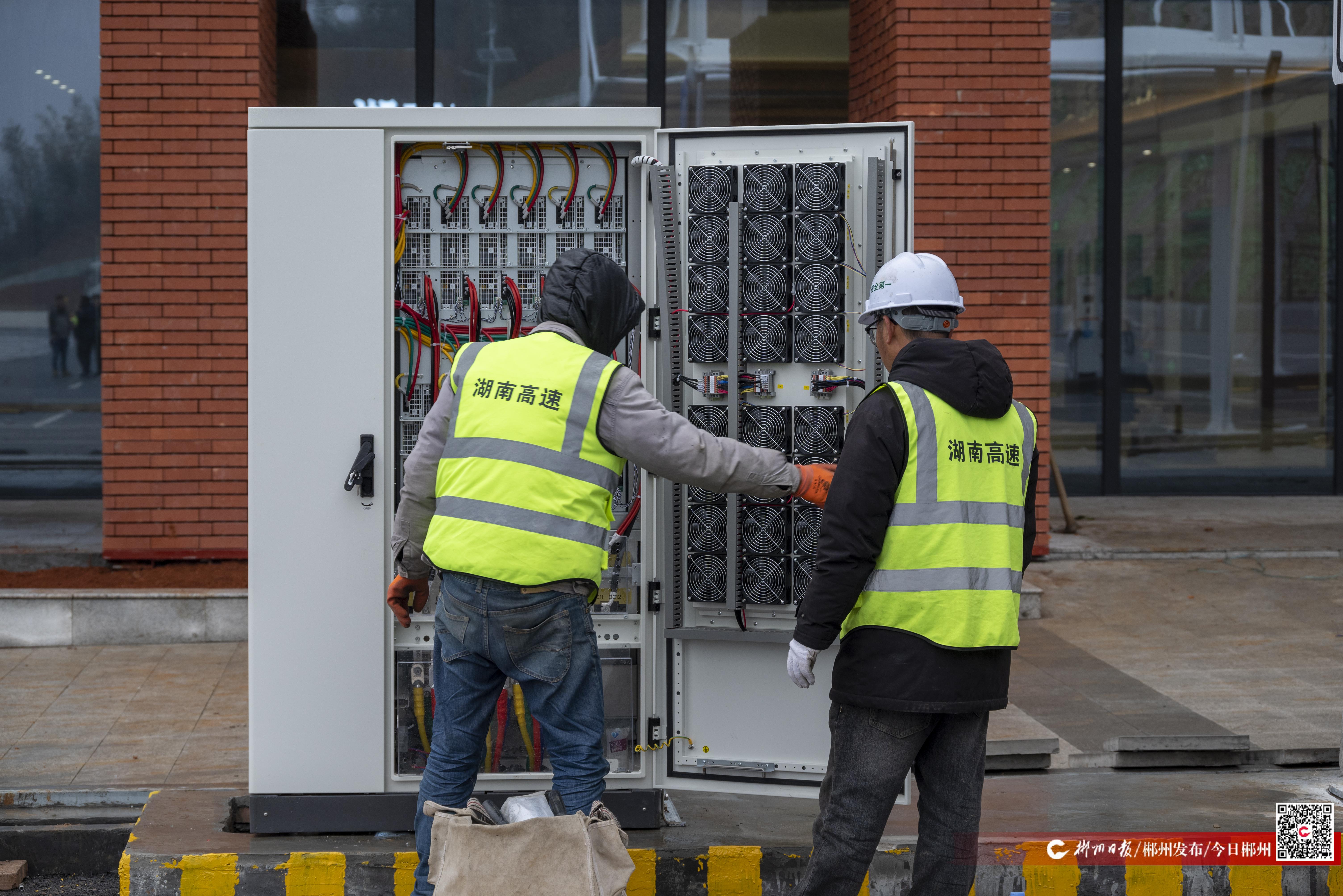 同步完工的还有新建的郴州服务区。记者在现场看到,服务区主体建筑整洁崭新,便利店已做好营业准备,加油站、卫生间等设施齐全可用,部分餐饮店铺尚在进行内部装修收尾。场地上,7个快充桩和1个超充桩已安装完毕,技术人员正进行最终线路检查。该服务区将在通车时提供加油、充电、购物、如厕等基本服务,后续商业配套将逐步完善。
