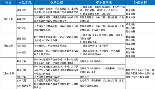 这两类业务是小额支付的主力军,几乎囊括了商业银行跨行清算的所有业务种类。