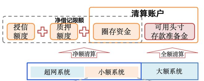 小额采用的轧差净额清算,因此他与大额系统的额度分开,与同样是净额结算的超网共享“净借记限额”。他的具体组成如下: