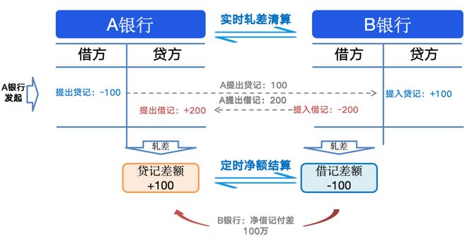 检查通过后就进入“实时双边轧差清算”环节,由于一组报文是“收付款银行两两配对”,所以将收付数据计算出一个“双边净额”,随后通知参与者“已轧差”。
