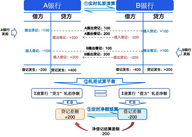 因为,两个银行清算账户(负债)间资金往来,在会计上是“借减贷增”,所以“借记”代表流出,“净借记”代表两个账户轧差后,谁是资金净流出方。详细计算过程参看上图。