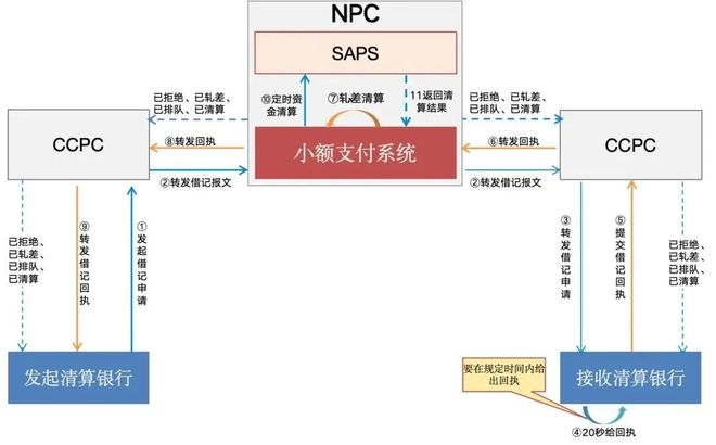 2)日间多场资金清算:工作日小额日间会分成多个清算场次进行实时轧差,定时净额结算资金。