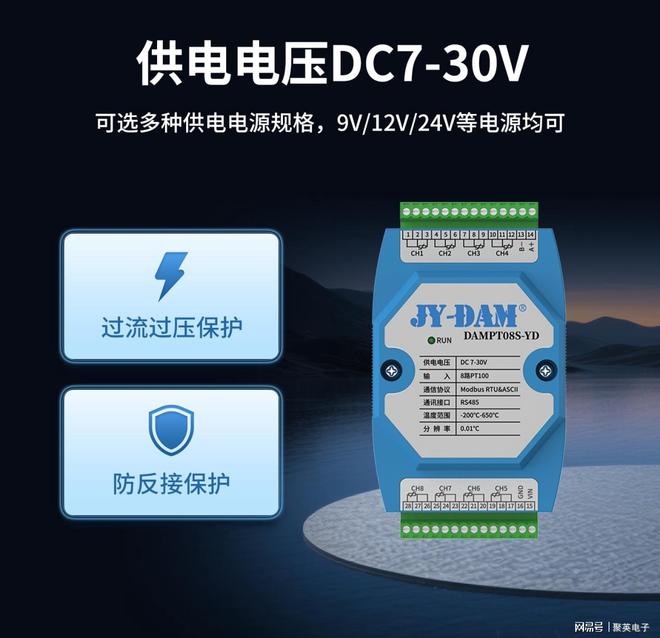 铂热电阻(如Pt100、Pt1000)温度采集模块,凭借高精度、高稳定性、抗干扰能力强的特性,是电力系统中温度监测的核心硬件之一。其核心作用是将铂热电阻的电阻信号转化为数字信号,实现对电力设备关键部位温度的实时采集、传输与报警,保障电力系统安全稳定运行。